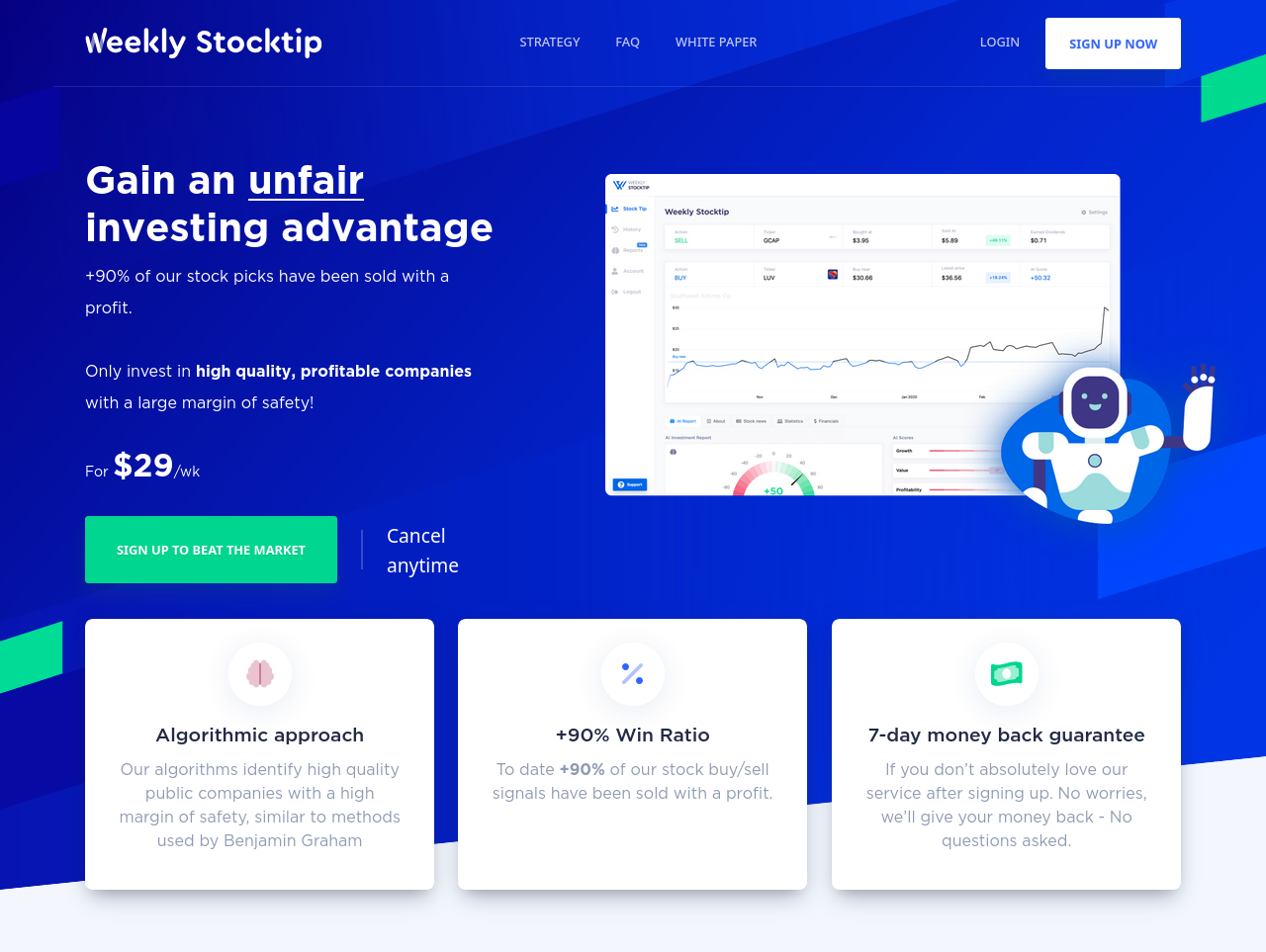 WeeklyStockTip is an AI-powered stock picking service designed to help investors identify high-quality, undervalued companies with a significant margin of safety